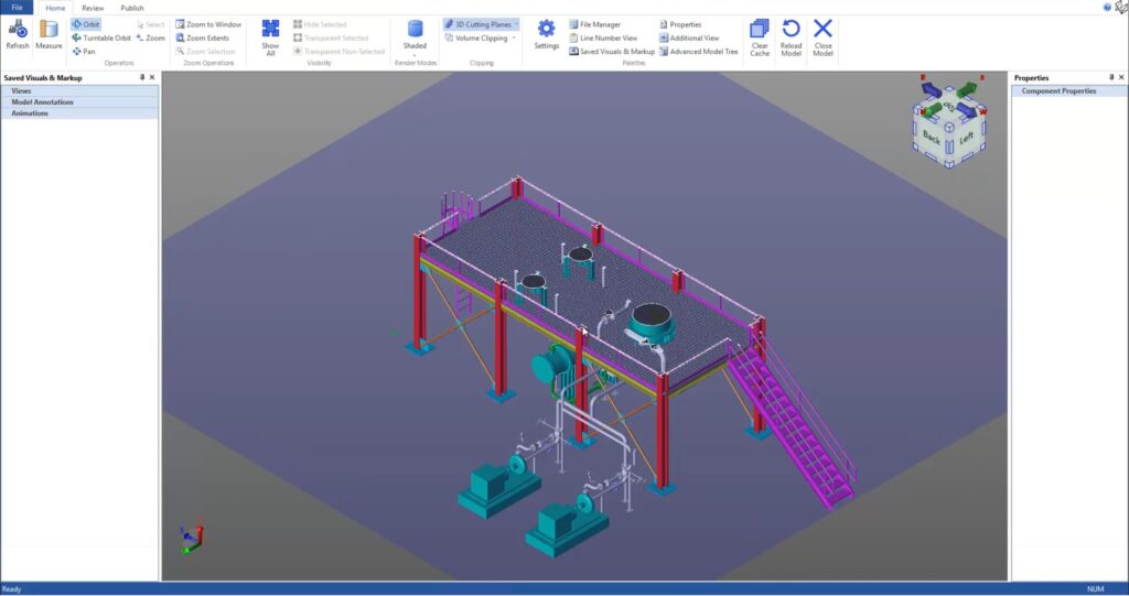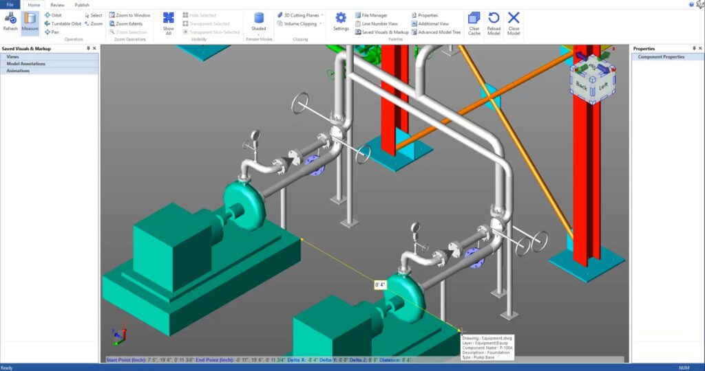 • Visualizzazione 3D ad alte prestazioni: CADWorx Design Review Professional offre funzionalità di visualizzazione 3D ad alte prestazioni che consentono agli utenti di interagire con modelli di impianti complessi in modo semplice e fluido. Ciò include la possibilità di visualizzare modelli dettagliati di tubazioni, apparecchiature, componenti strutturali e altro ancora.